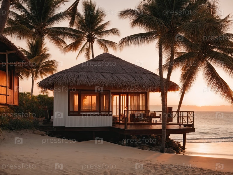 Бунгало с соленой крышей на тропическом берегу, премиум-курортное проживание, жилье в вилле, объявление о путешествиях в рай, сайт семейного туризма