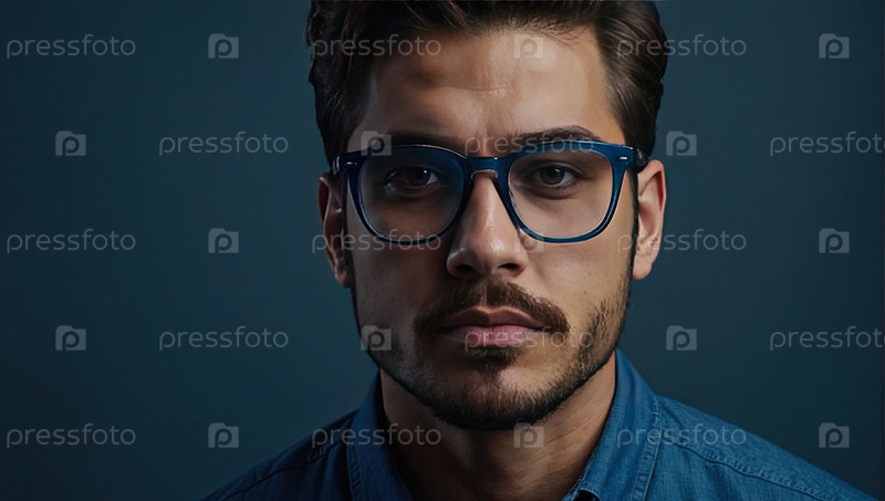 Бородатый офисный сотрудник в современных очках, корпоративный внешний вид, комфортное зрение, цифровой бизнес, технологии, консалтинг, здоровое внимание, производительность, позитивное отношение