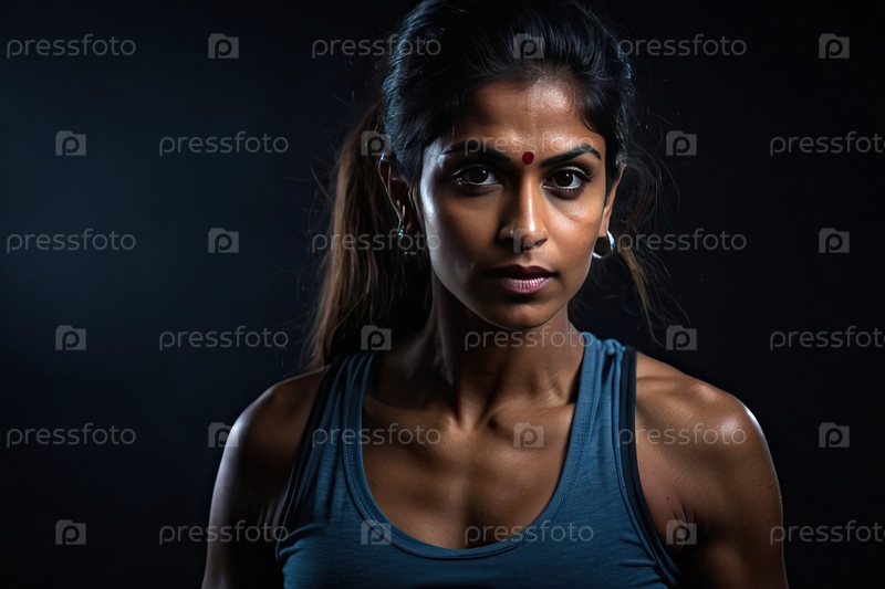 Индийская женская фитнес-тренера, тренажерный зал, спортсменка, спортивная одежда, оздоровление, сотрудники клуба, здоровый образ жизни, мотивация, профессионал, портрет, текстовое местоположение, использование Интернета