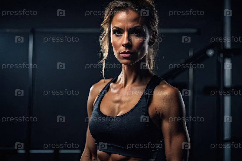 Портрет персонала клуба, кавказская женская фитнес-тренера, спортсменка, тренажерный зал, профессионал, спортивная одежда, здоровый тренер, личные тренировки, промо/брендинг, текстовая область