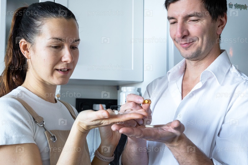 Здоровая пара пьет витамины, витамины для здоровья, витамин D3, витамин А, энергетические добавки, объявление в аптеке, интернет-магазин, использование баннеров