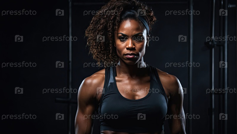 Афроамериканская женская фитнес-тренера, профессиональная гимнастическая тренерка, сила, оздоровление, мотивация, портрет персонала, личная тренировка, текстовая область сообщений