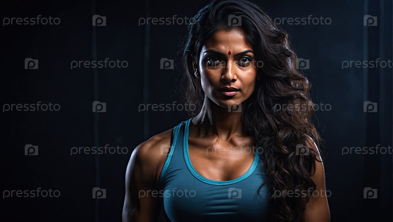 Индийская женская фитнес-тренера в тренажерном зале, спортсменка, личный тренер, спортивная одежда, здоровый, персонал клуба, мотивация к тренировкам, оздоровление, промо, место для текста