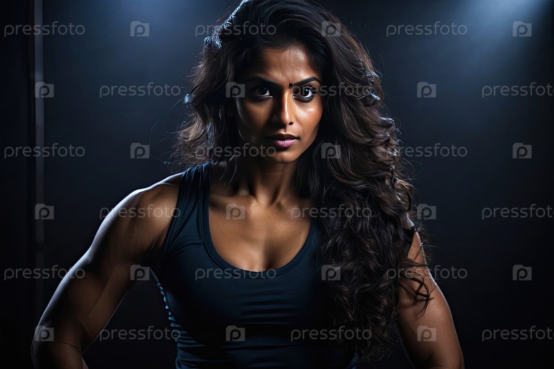 Мотивированный индийский профессионал женского фитнеса, тренажерный зал, обучение, персонал, тренер по оздоровлению, спортсменка, клуб, личный тренер, портрет, промо, использование в образовании, текстовая зона
