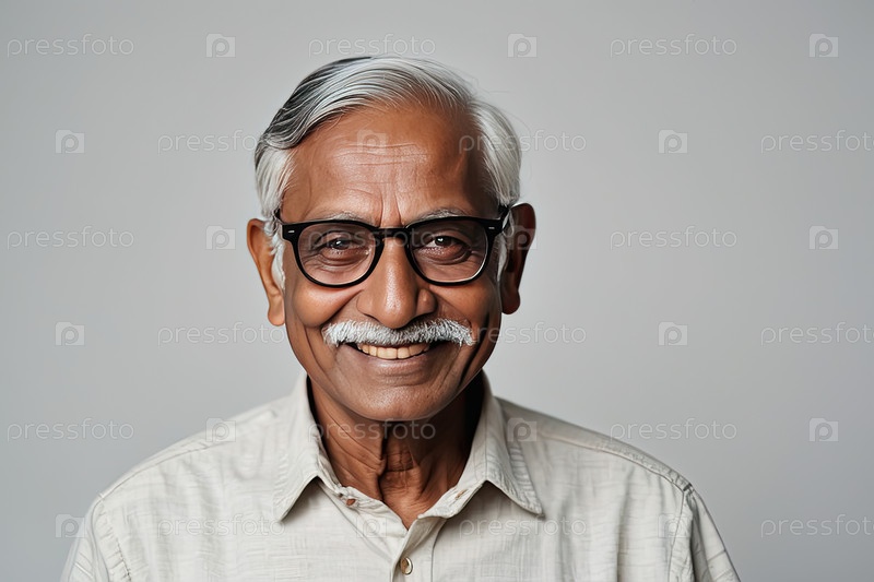Старший азиатский мужчина в очках, аккуратная рубашка, белые волосы, улыбка, студийный снимок. дальнозоркость, помощь по рецепту, зрелый стиль, брошюра центра ухода, социальная реклама, копирайтинг
