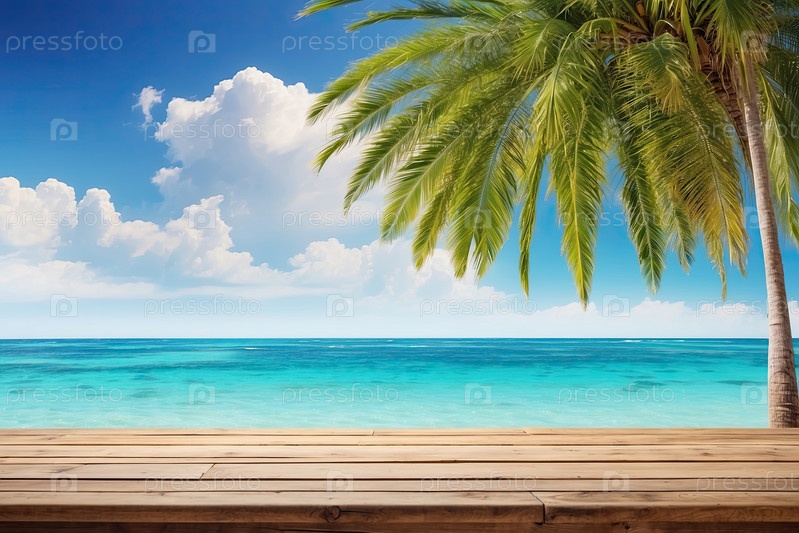 Тропическая набережная, голубое море, пляжный отдых, реклама туризма, витрины продуктов, объявление о еде, фото каталога, открытое копирование для вашего текста