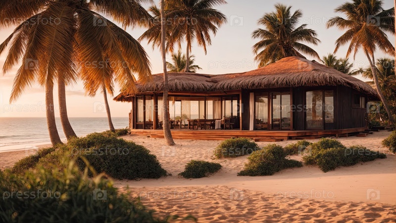 Береговая соломенная бунгало с пальмами, роскошный индивидуальный отдых, тропический курорт для семей, продвижение туристического агентства