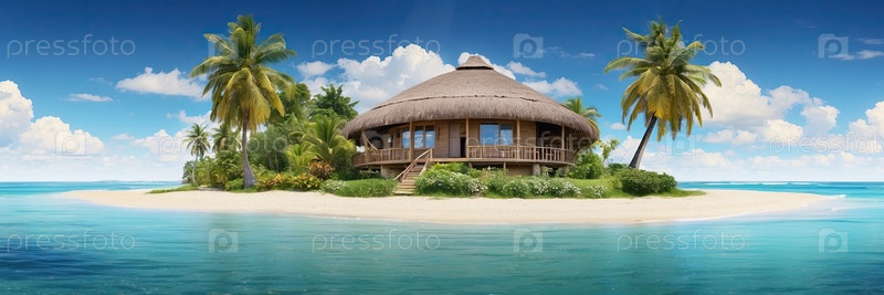 Тропическая вилла с видом на бирюзовое море, тихий семейный курорт "все включено", частное летнее жилье, цифровые мультфильмы