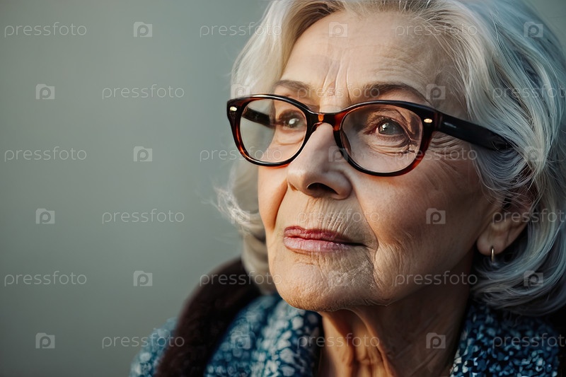 Старшая европейская женщина с прямоугольными очками, пастельно-синий кардиган, белая блузка, солнечный свет. макулярная дегенерация, катаракта, астигматизм, пресбиопия, профилактическая часть ухода за зрением, поле баннера сайта