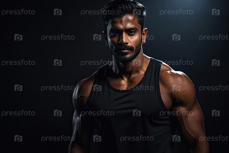 Индийский тренер по фитнесу в тренажерном зале, мускулистый мужской спортсмен, личный тренер, спортивный клуб, мотивация, здоровый, профессиональный, персонал, текстовое пространство для брендинга