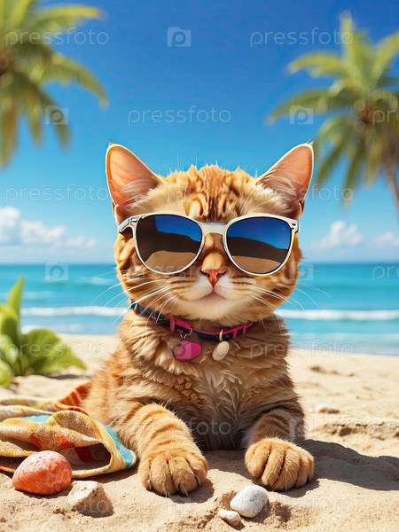 Кошка в солнцезащитных очках с игрушкой, путеводитель по авиаперелетам для питомцев, размещение животных в гостинице, риск перегрева, временный уход за домашним любимцем, веб-сайт, реклама, информационные материалы