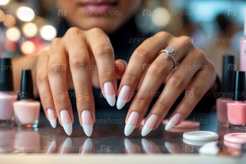Тематический нежный маникюр в ярких пастельных розовых цветах с французским и блестящим дизайном AI Generative