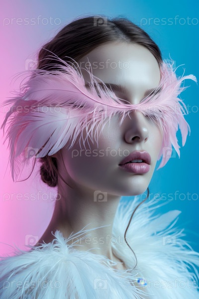 Фантастический портрет молодой красивой женщины магическая модель красочные розовые перья сказка AI Generative