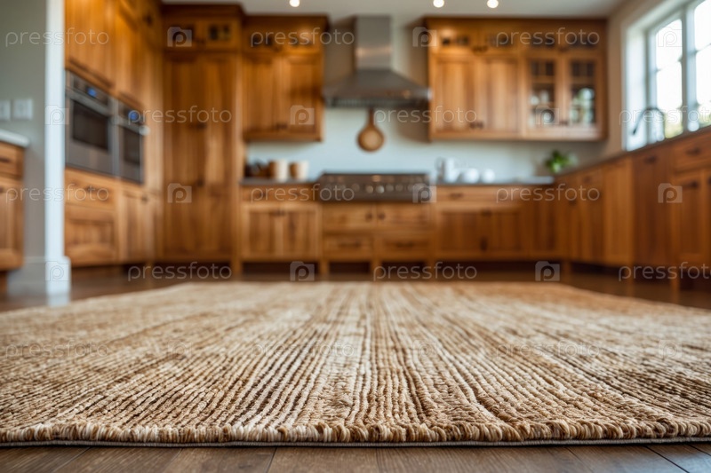 Современный стильный модный кухонный интерьер с деревянной мебелью и размытым фоном AI Generative