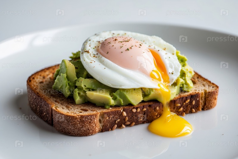 Скрумблированное жареное яйцо на тосте с авокадо, сердечный вкусный традиционный кулинарный бранч кухни AI Generative