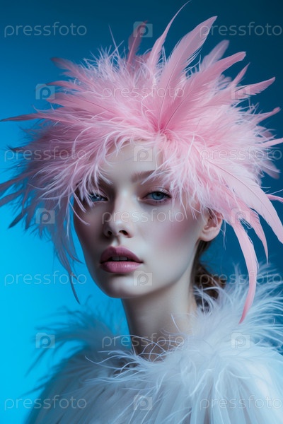 Фантастический портрет молодой красивой женщины магическая модель красочные розовые перья сказка AI Generative