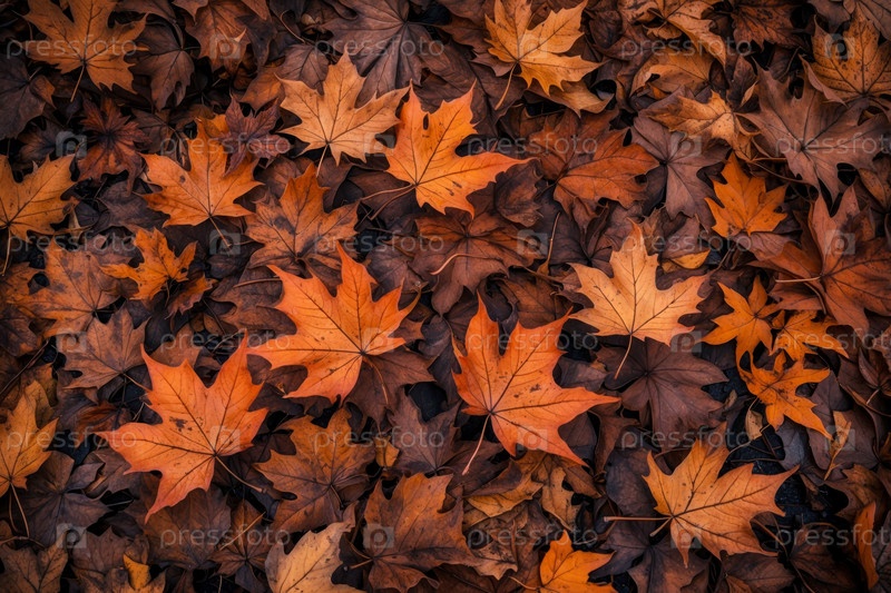 AI Generative Осенний атмосферный фон с желтыми и красными листьями, лист лежит на земле в лесном парке