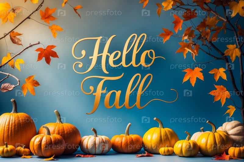 AI Generative Поздравление с надписью Привет, осень-осень на фоне желтого и красного листьев