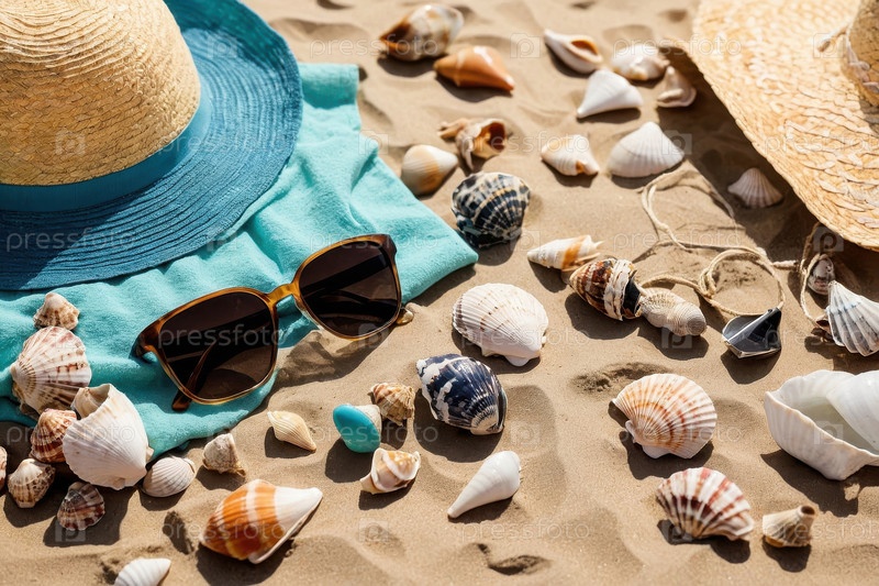 Натюрморт летняя тропическая квартира лежала с атрибутами выходных на морском океане AI Generative