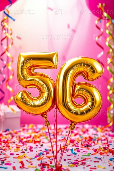 Гелий день рождения воздушный шар формы номер пятьдесят шесть, золотые буквы фигура 56 праздник праздничный фон декор