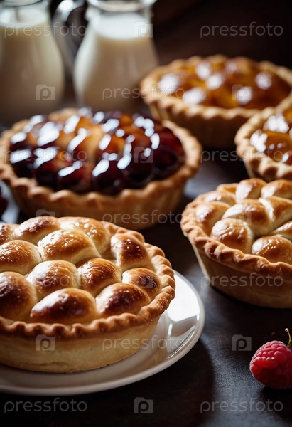 Свежевыпеченные кондитерские изделия и пироги привлекательно расположены на столе в теплой пекарне