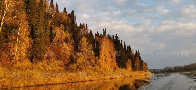 Осенний пейзаж на реке Ухта в Республике Коми, Россия