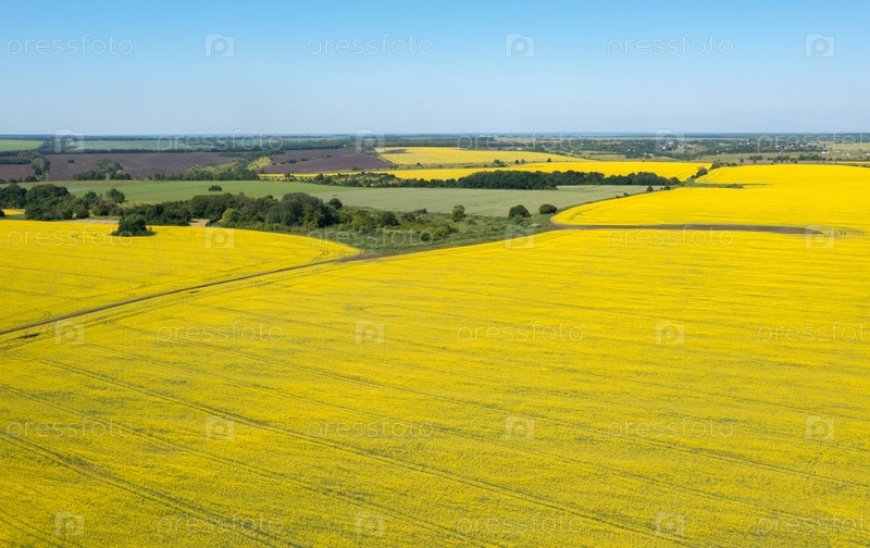 Широкий горизонт и цветущие рапсовые поля, символизирующие урожай и природу