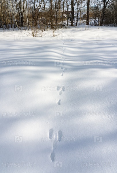 Отпечатки лап зайца на свежем снегу, зимней природе