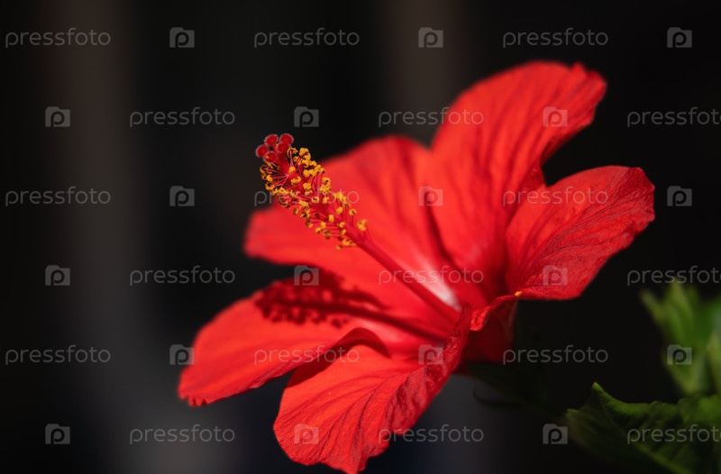 Красный цветок гибискуса на темном фоне, ближайший снимок