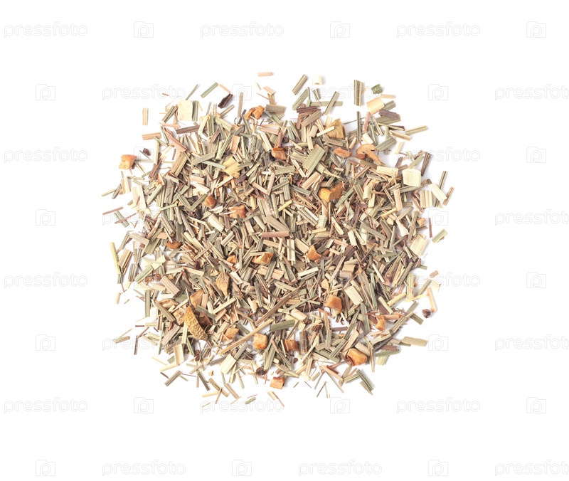 Зеленый чай с лимонной травой и сухими фруктами, изолированными на белом