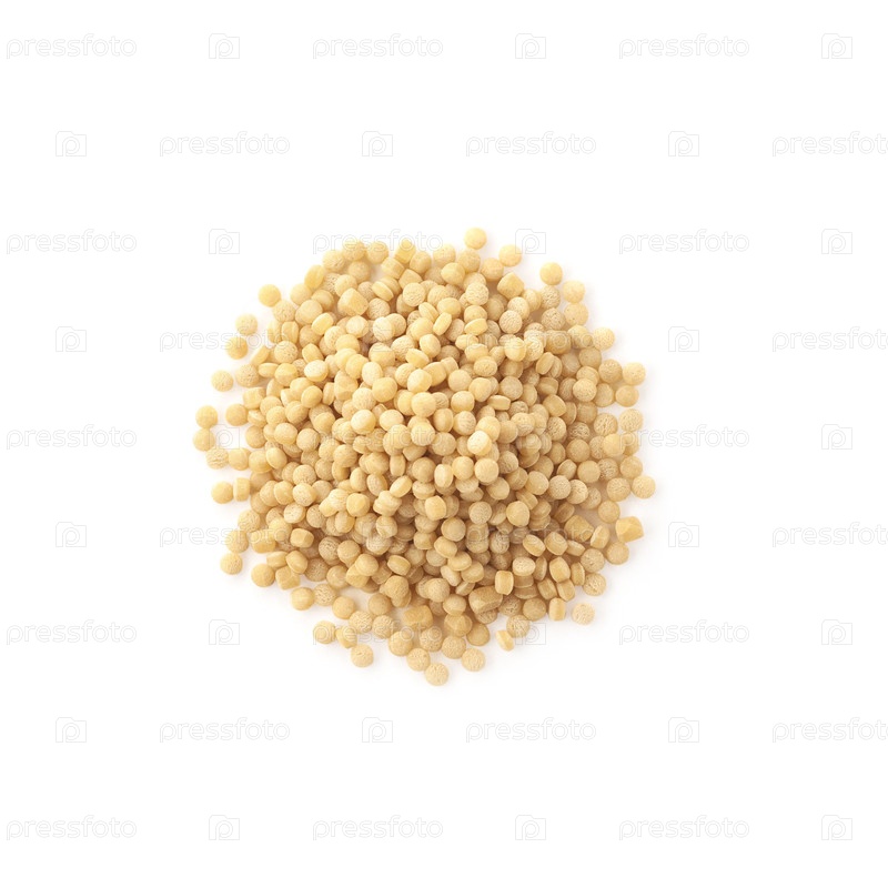 Куча небольших круглых макарон ptitim, изолированных на белом фоне