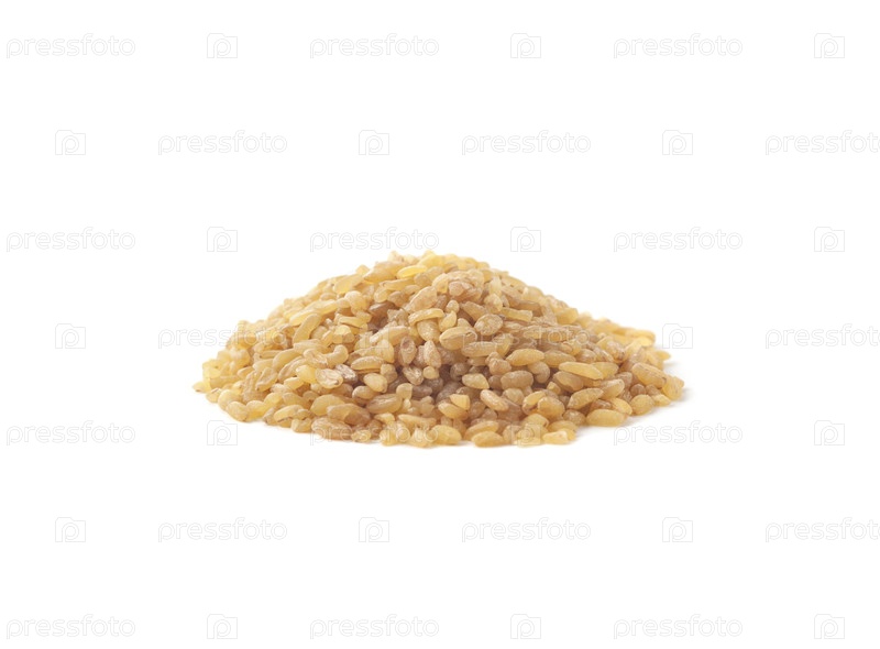 Куча семян булгура. сырой ингредиент пищи, изолированный на белом фоне