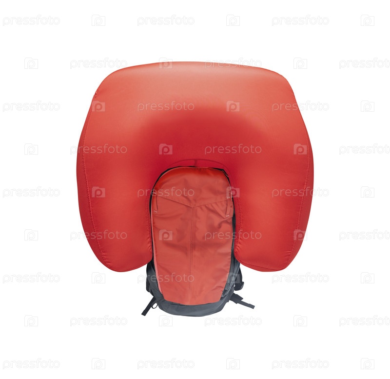 Надутый рюкзак с воздушными подушками лавины изолированный на белом фоне