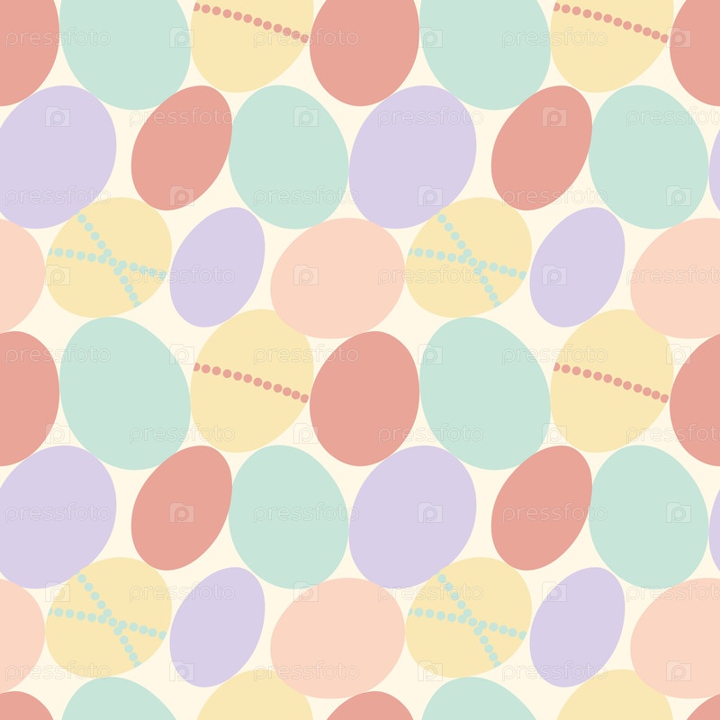 Бесшовный рисунок с пастельными пасхальными яйцами в мягких цветах и деликатным точкальным орнаментом