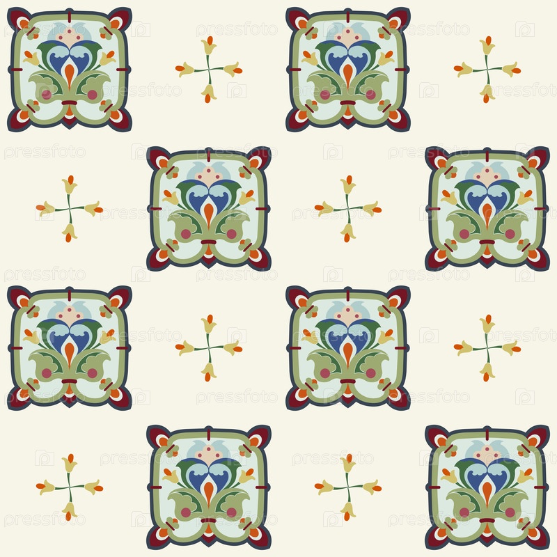 Бесшовный декоративный векторный рисунок в цветочном традиционном стиле