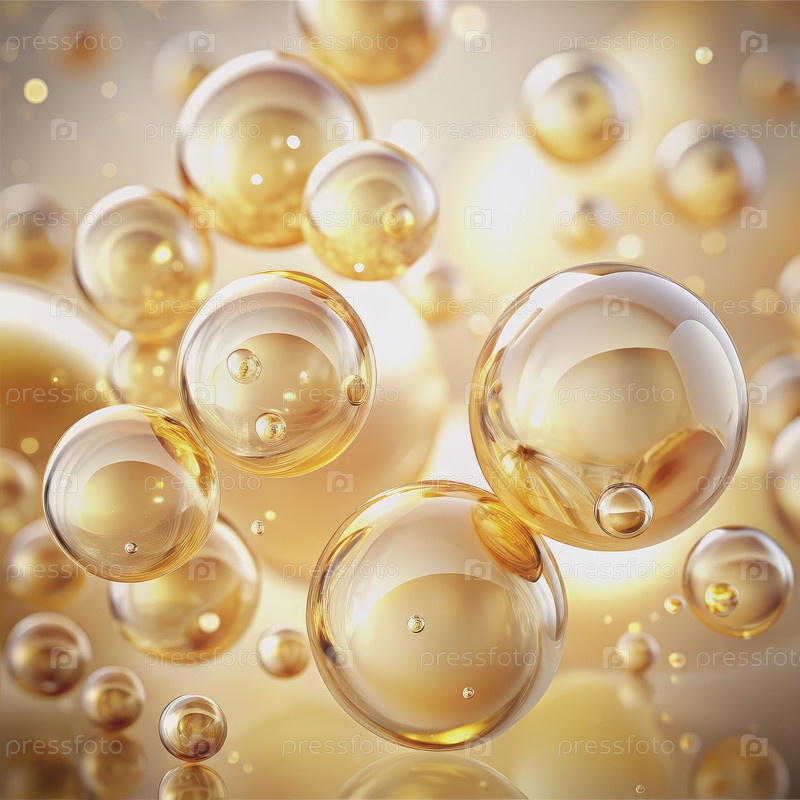 Золотые прозрачные гелевые капли плавают в воздухе. генеративная ИИ