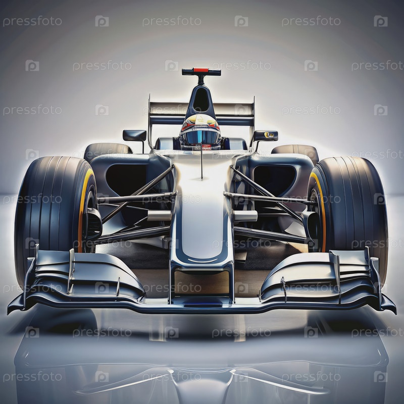 Фронтальный вид гоночного автомобиля Формулы-1 на сером фоне