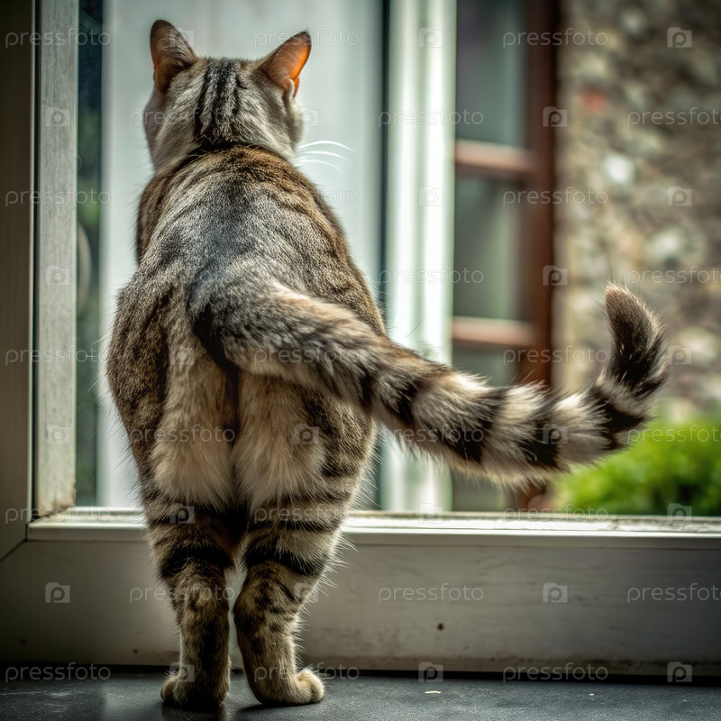 Табби-кошка смотрит в окно. генеративный ИИ А