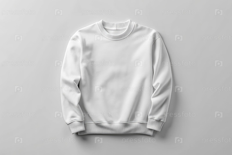 Мокет пуховика Cotton Crewneck White Sweatshirt на сером фоне. генеративный ИИ