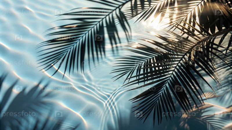 Наземный вид теней пальмовых деревьев, отбрасываемых на струю воды
