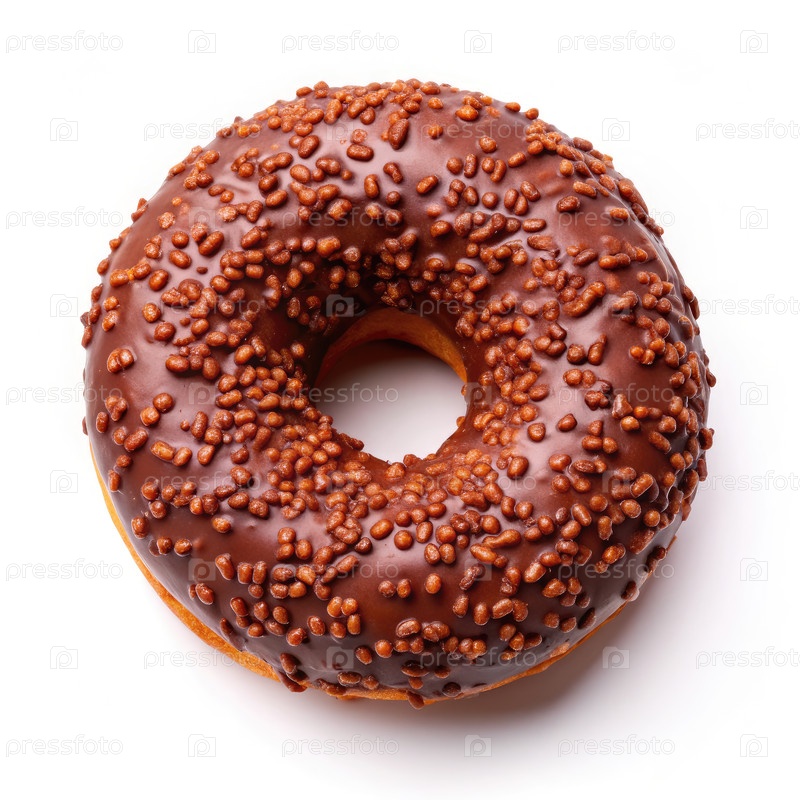 Шоколадный пончик с шоколадом на белом фоне. генеративная ИИ