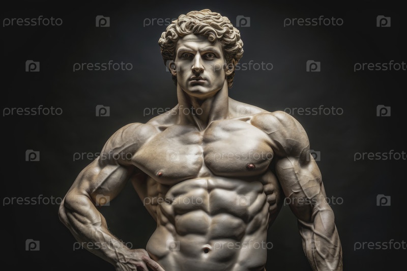 Каменная статуя мускулистого мужчины в студии