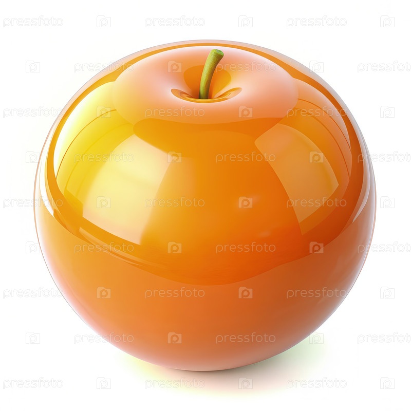 Глянцевое оранжевое яблоко с зеленым стеблем на белом фоне