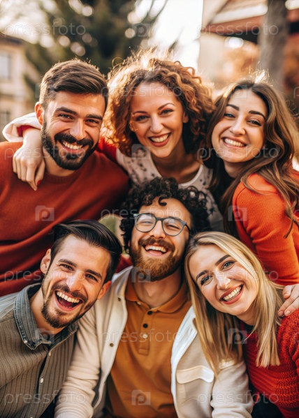 Улыбающиеся друзья позируют для фотографии в солнечный день