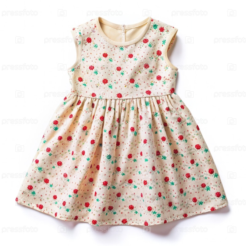 Cream Sleeveless Baby Frock с красным цветочным узором на белом фоне