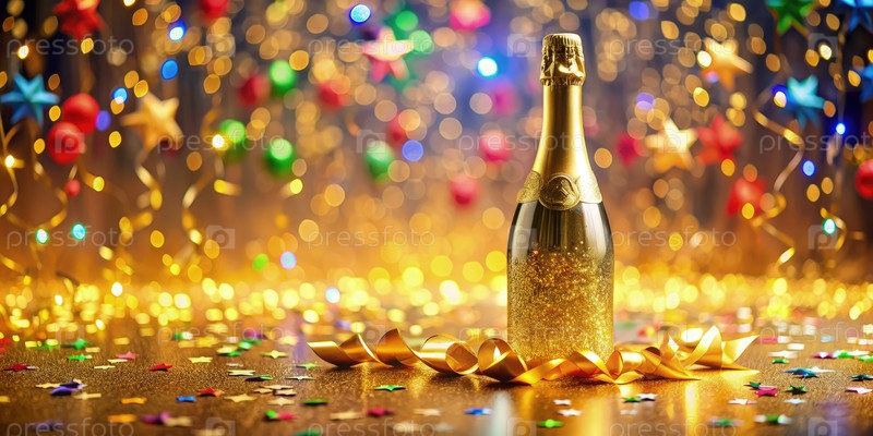Бутылка шампанского на праздничном фоне