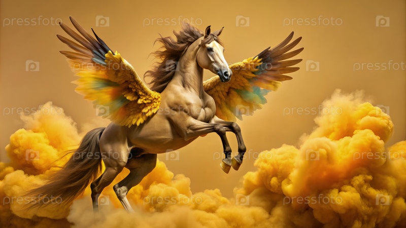 Величественный Пегас, выходящий из золотых облаков
