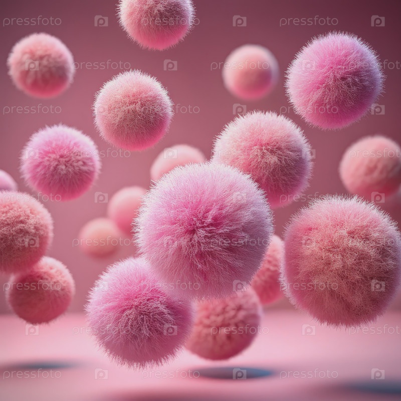 Розовые пушистые шары плавают на розовом фоне