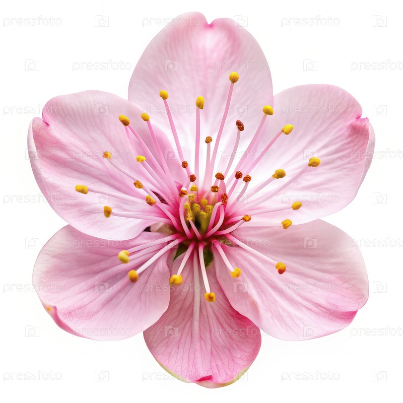Одинокий розовый цветок вишневого цвета изолированный на белом фоне. генеративная ИИ