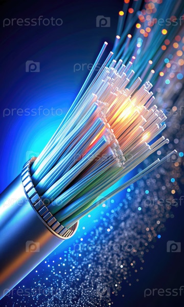 Закрыть волоконно-оптический кабель с ярким светом, проходящим сквозь него. генеративный ИИ